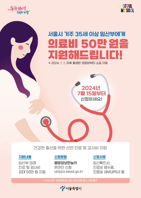 서울시에 거주하는 모든 35세 이상 임산부에게 최대 50만 원 의료비 지원