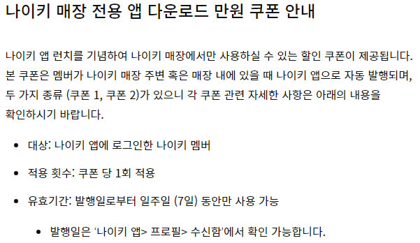 나이키 매장에서만 사용할 수 있는 할인 쿠폰을 나이키 앱에서 줍니다.