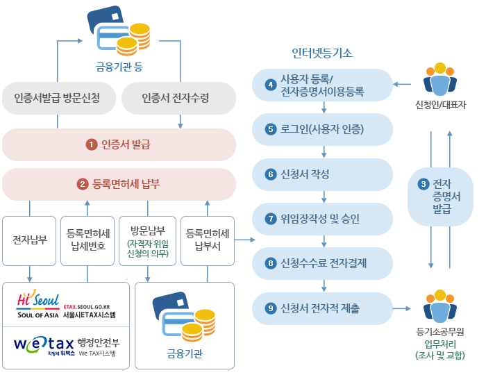 - 전자 납부 서비스 : 등기 신청 수수료를 온라인으로 납부할 수 있는 시스템이 마련되어 있습니다.